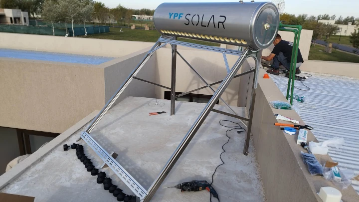 El termotanque deberá ser instalado en un techo plano de losa, es necesario que el tanque de agua que lo alimente se encuentre en el mismo techo y tener el caño de conexión de agua caliente de la casa disponible para cortarlo, realizar el empalme al termotanque solar. Además es necesario que haya un segundo caño proveniente del tanque de agua para conectarlo a la válvula termostática, a la misma válvula se le conectará la salida del termotanque y por último se conectará la salida de la válvula a la cañería de agua.